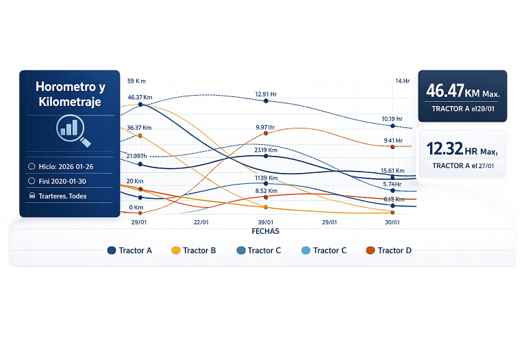 Monitorea, audita y optimiza las operaciones de tus tractores con datos reales y confiables.